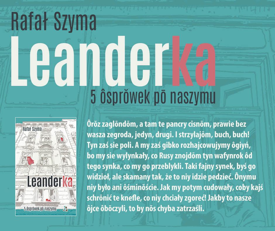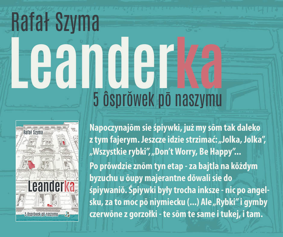 Zbiór opowiadań „Leanderka. 5 ôsprowek po naszymu” to śląskojęzyczny debiut Rafała Szymy. Zawarte w nim teksty to współczesna, nowoczesna proza pozbawiona folklorystycznego charakteru. Język śląski nie jest w niej celem samym w sobie – w każdym razie nie bardziej niż jako regularne, autonomiczne tworzywo literackie.