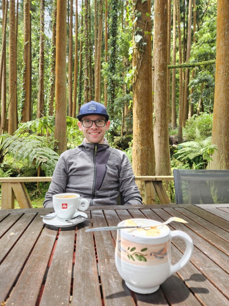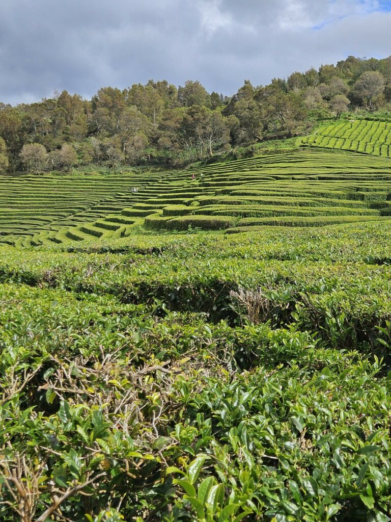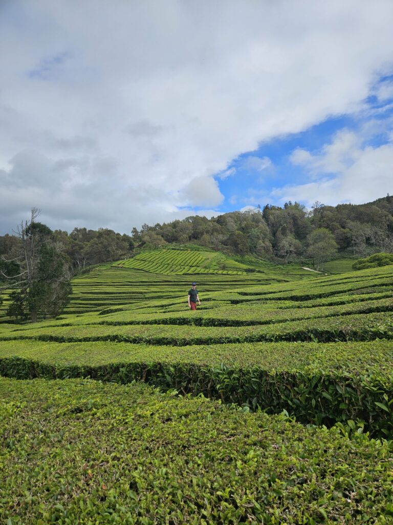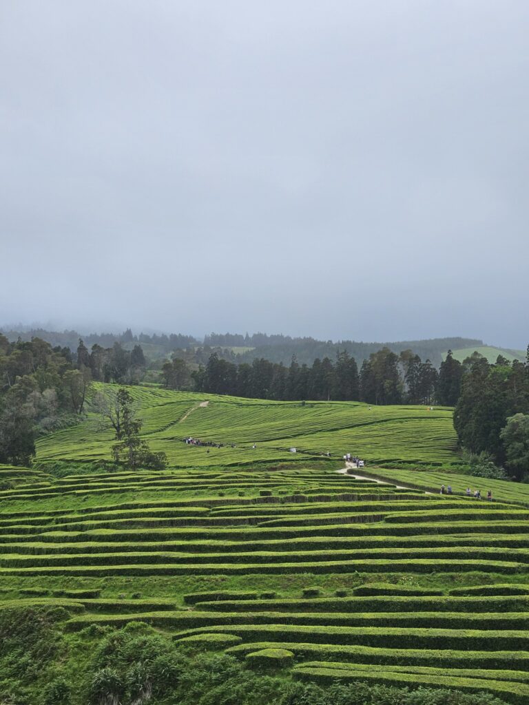 W drodze powrotnej zahaczyliśmy jeszcze o plantację herbaty Gorreana – jedyną tego typu w Europie, która produkuje herbatę nieprzerwanie od 1883 roku. Zielone tarasy herbaciane układają się kaskadowo na zboczach wzgórza, a w tle widać okoliczne pagórki i Ocean Atlantycki. Szlaki między rzędami krzewów są dobrze utrzymane, więc można spokojnie spacerować, robić zdjęcia i cieszyć się widokami.