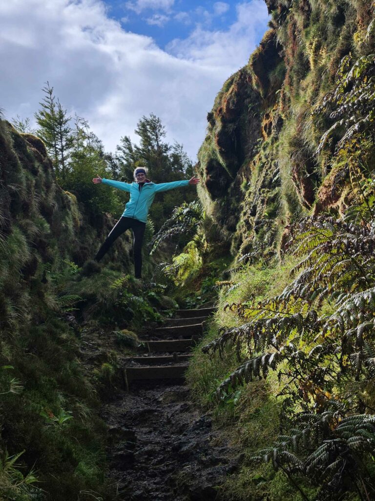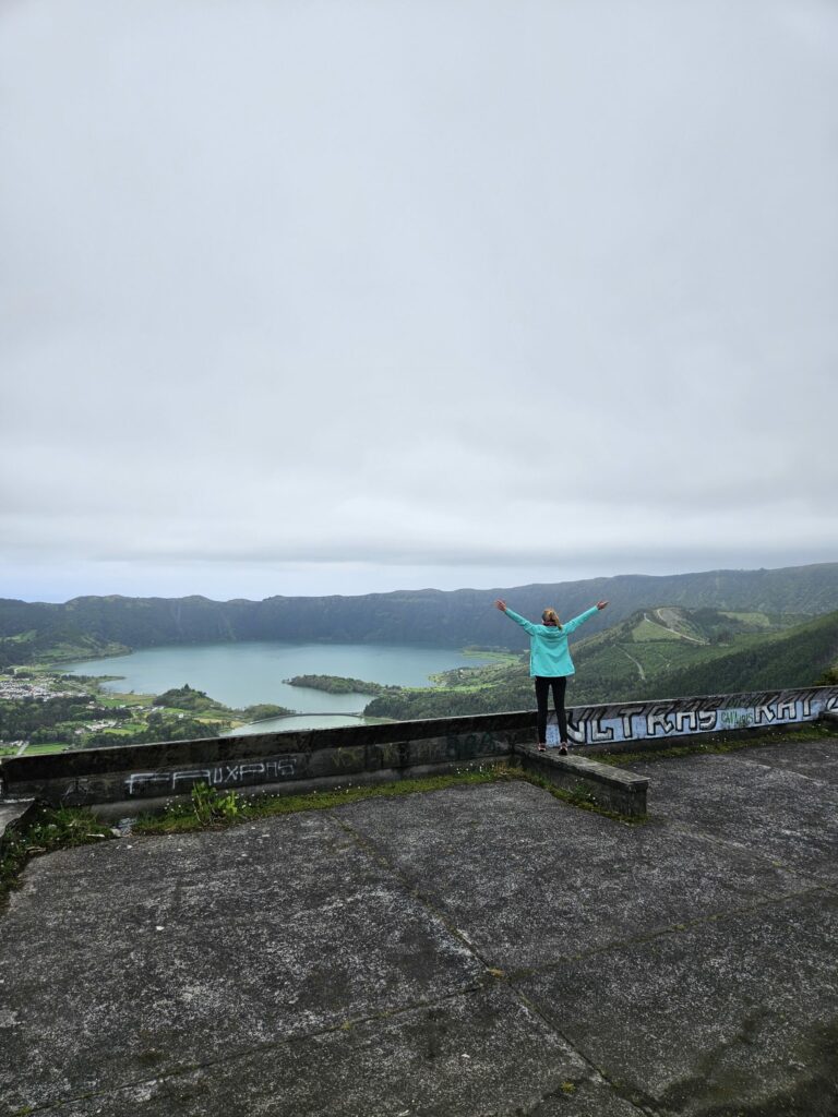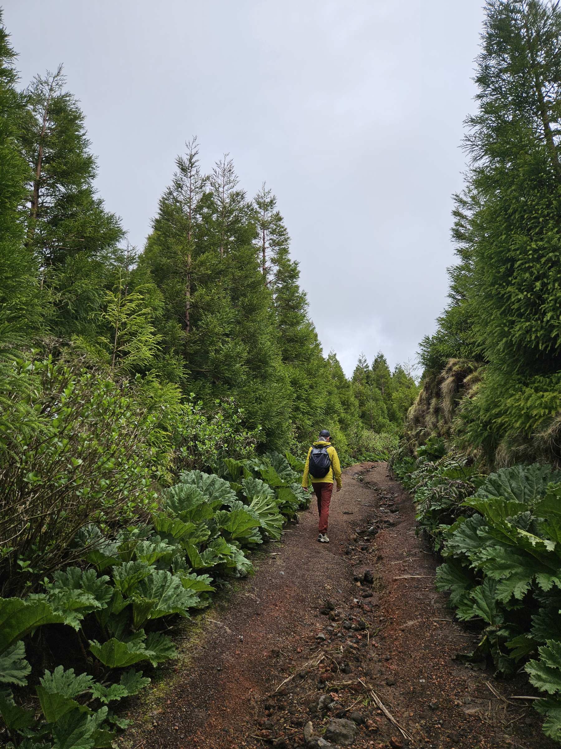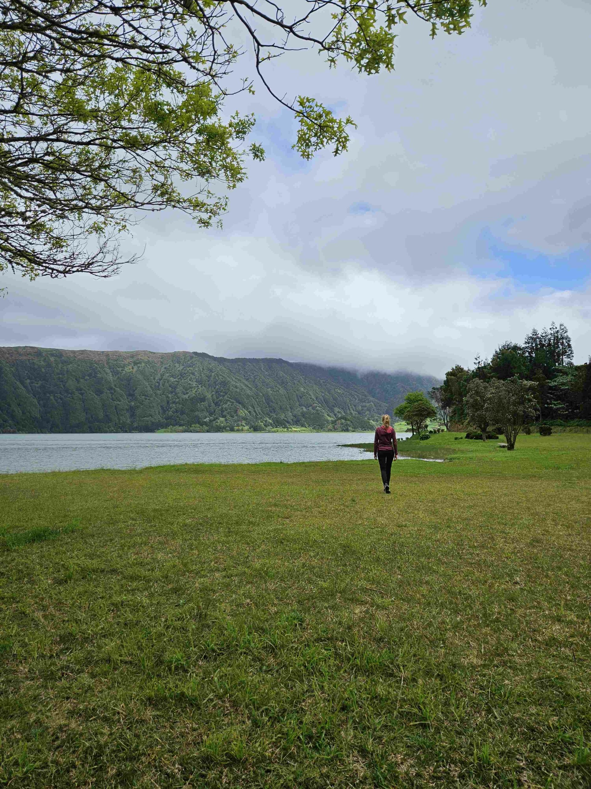 Naszym pierwszym celem było Lagoa Empadadas, czyli dwa niewielkie jeziora ukryte w dawnych kraterach wulkanicznych, położone wśród gęstego, wilgotnego lasu. Dojazd był prosty, a przy początku szlaku znajduje się mały parking, z którego rusza łatwa trasa spacerowa. Całość zajmuje około dwóch godzin, więc to idealne miejsce na spokojny początek dnia. Lagoa Empadadas to jedno z mniej znanych miejsc na São Miguel i właśnie dlatego panuje tu wyjątkowa cisza. Mimo pochmurnej pogody jeziora wyglądały bardzo klimatycznie, wilgotne powietrze, zapach lasu i lekka mżawka tylko potęgowały wrażenie dzikości i surowości. Spotkaliśmy zaledwie kilka osób, co dodatkowo podkreślało poczucie odosobnienia.