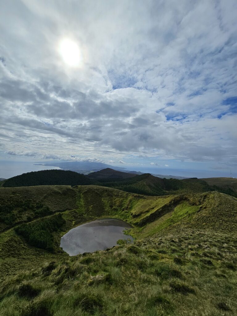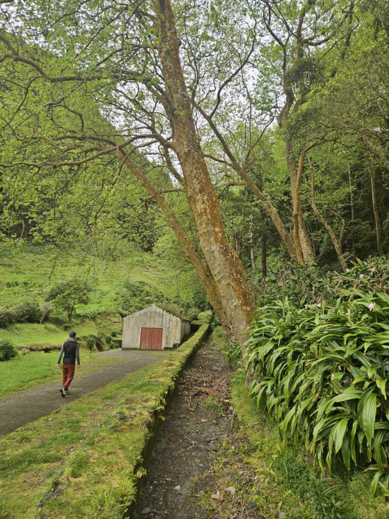 Kolejnym przystankiem była Lagoa de Eguas, niewielkie jezioro położone niedaleko Sete Cidades. Nie prowadzi tu żaden długi szlak, to raczej miejsce na krótki postój i kilka minut spaceru wokół jeziora. Dobry punkt, by zobaczyć wulkaniczny krajobraz tej części wyspy i otaczającą go intensywną zieleń.