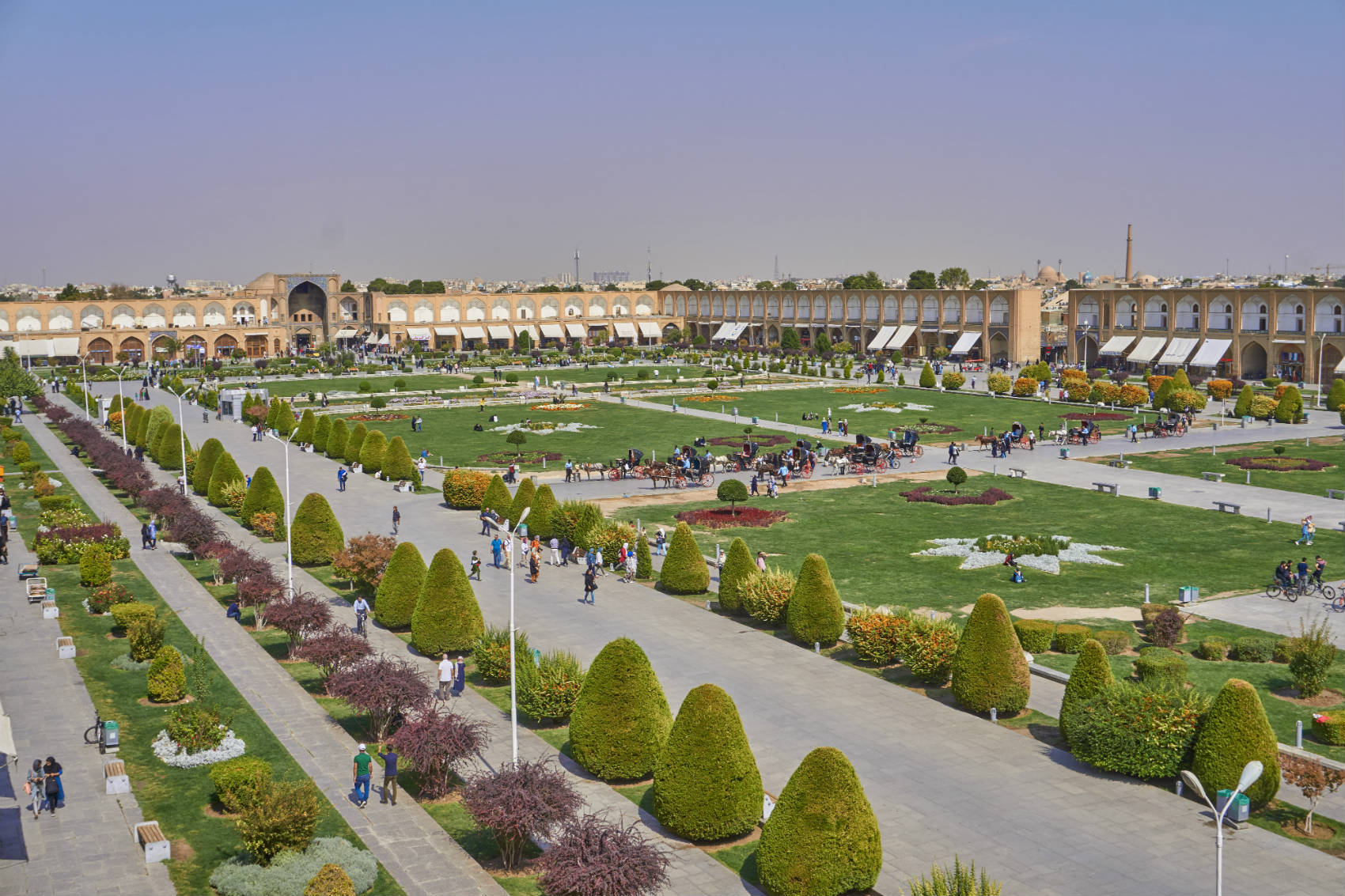 Można powiedzieć, że wszystkie najważniejsze miejsca w Isfahanie koncentrują się w okolicy Placu Immama (Maidān-e Naqsh-e Jahān). Sam plac o wymiarach 512 × 159 m, zbudowany u schyłku XVII wieku, już po przeniesieniu stolicy Persji do Isfahanu pełnił początkowo funkcję wyłącznie reprezentacyjną. Jednak już po kilku latach od powstania, rozbudowano go o przylegające arkady handlowe, w których do dziś kupcy oferują rozmaite towary; począwszy od słynnych perskich dywanów, przypraw, wyrobów ze srebra i złota, tkanin, na tradycyjnych perskich słodyczach skończywszy.