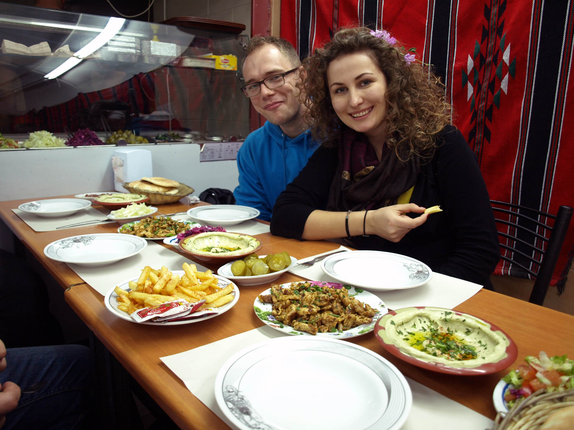 Pierwszą noc z racji późnego lądowania spędziliśmy na lotnisku. Na Ben-Gurionie można bez problemu znaleźć cichy kącik, gdzie prześpimy się aż do świtu. Ochrona jest życzliwa i nie robi żadnych problemów. Ceny posiłków i napojów są bardzo wysokie.