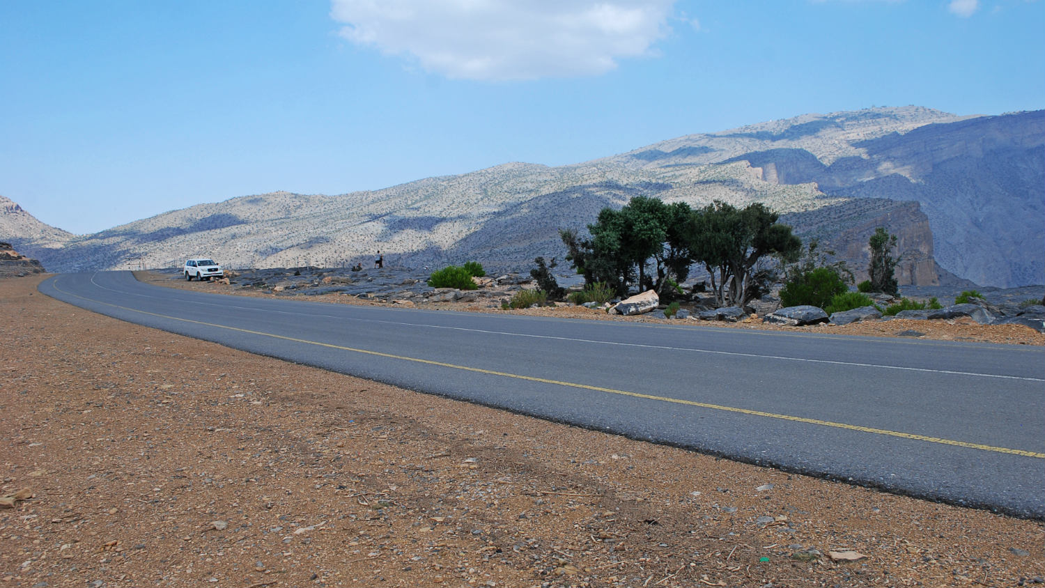 Z Misfat al Abriyyin na plateau prowadzi dość stroma i kręta droga o długości około 35 km. Problematyczny może okazać się jedynie ostatni odcinek o długości 7 km, w przeciwieństwie do drogi na szczycie – nie jest położony na nim asfalt, a jedynie zwykły żwir. W Internecie i przewodnikach sugerowano, iż do wjazdu na samą górę potrzebny jest samochód 4×4. Omańczycy twierdzili, że napęd na 4 koła się przyda, ale nie jest konieczny. My to potwierdzamy – Toyotą Corollą na plateau wjechać można, ale trzeba uważać.