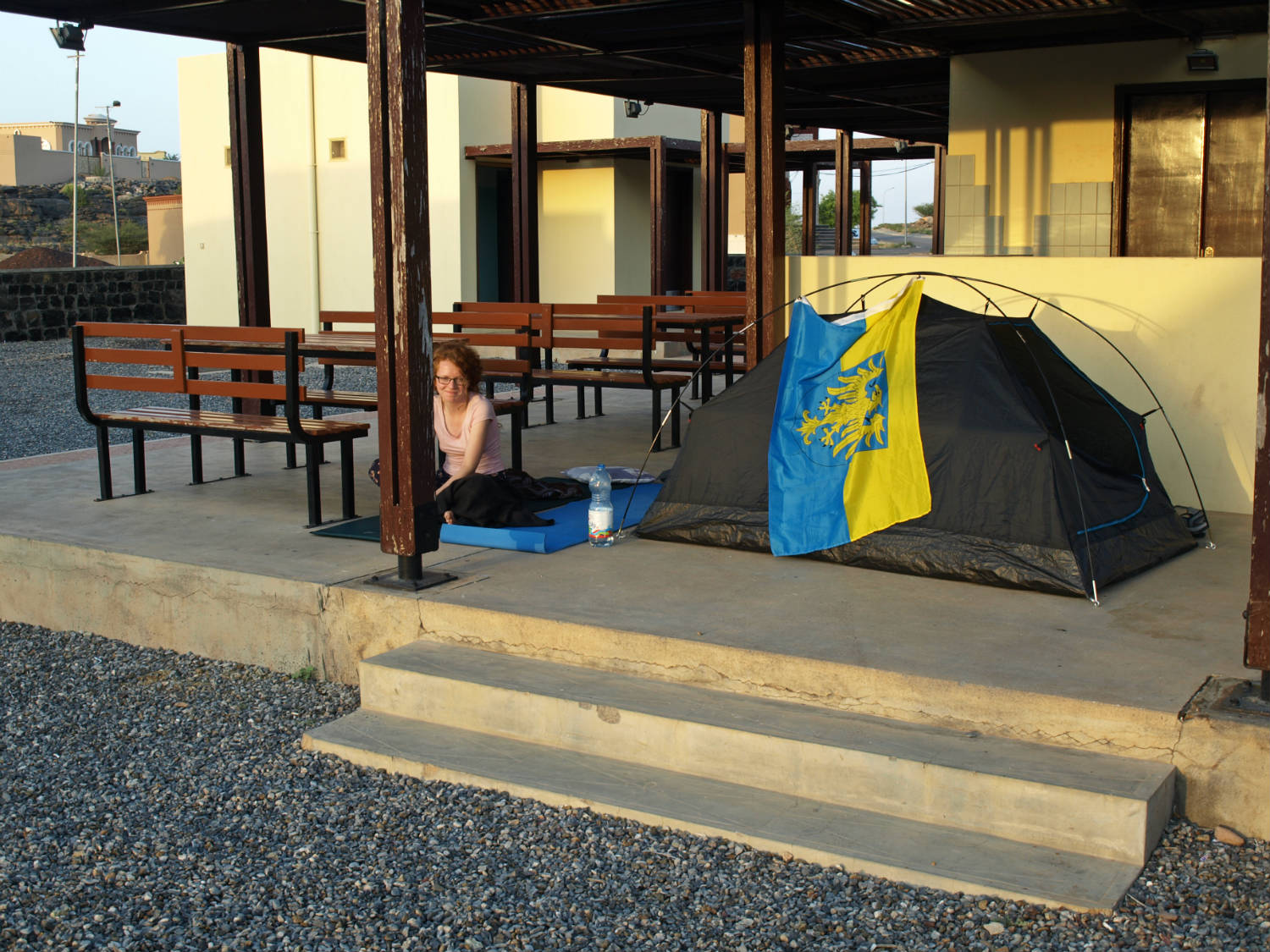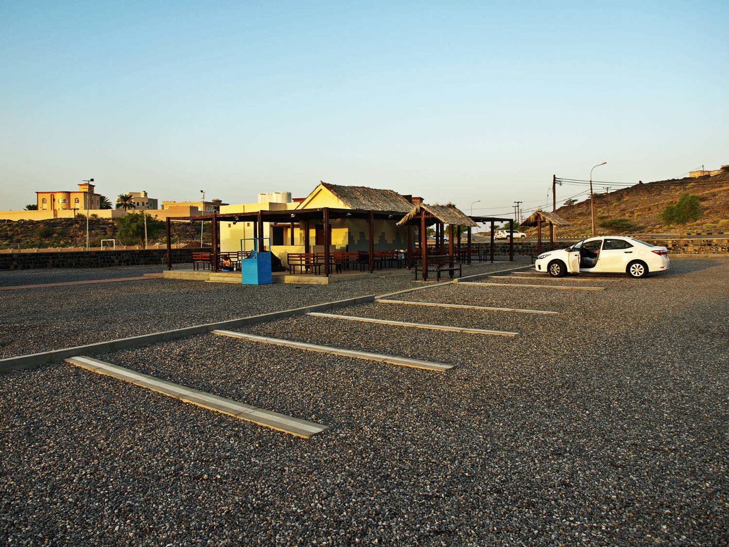 W centrum nowszej części miejscowości znajduje się przygotowany przez Ministerstwo Turystyki kemping, na którym można bezpłatnie przespać się i skorzystać z prysznica. Miejsce to de facto bardziej przypomina parking z placem zabaw, ale namiot bez problemu można rozłożyć na betonie. Darmowy prysznic jest także nieocenionym dodatkiem. Nie ma żadnych problemów z bezpieczeństwem. Przez cały dzień nad obiektem czuwa stróż. Toalety są jak na arabskie standardy relatywnie czyste.