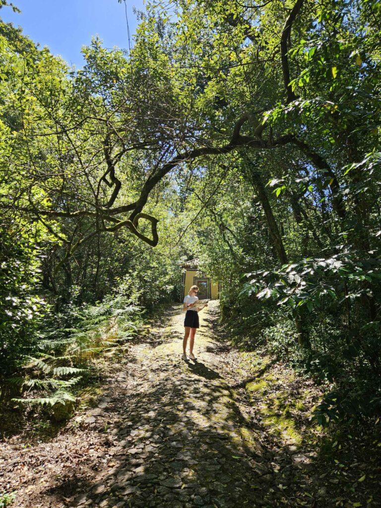 Kolejnego dnia, po śniadaniu, pożegnaliśmy się z Karoliną i Danielem i ruszyliśmy w stronę Mata Nacional do Buçaco, jednego z najbardziej niezwykłych lasów w Portugalii. To dawne tereny klasztorne, które od XVII wieku były zamknięte i pielęgnowane przez zakon Karmelitów Bosych. Mnisi żyli tu w odosobnieniu, a teren otoczony był murem i przez długi czas pozostawał niedostępny dla postronnych. To właśnie oni zaczęli sprowadzać do Buçaco rośliny z różnych stron świata. Dziś rośnie tu kilkaset gatunków drzew, od potężnych cedrów, przez sekwoje, po egzotyczne paprocie i cypryśniki. Spacerując alejkami, ma się wrażenie, że to bardziej ogród botaniczny niż zwykły las, choć całość zachowała bardzo naturalny, lekko dziki charakter.