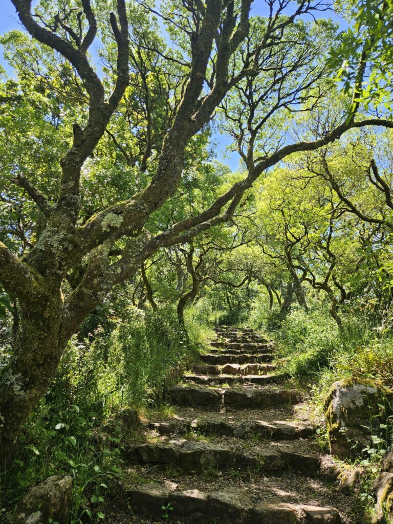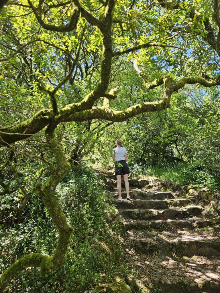 My spędziliśmy tam około 4–5 godzin, wędrując praktycznie każdym możliwym szlakiem i skręcając w każdą alejkę, która wyglądała choć trochę intrygująco. Trafialiśmy na niewielkie groty, kamienne schody prowadzące donikąd, stare fontanny i punkty widokowe, z których rozciągała się panorama okolicznych wzgórz, jak i miejsca, w których można było usiąść w ciszy i po prostu chłonąć atmosferę.