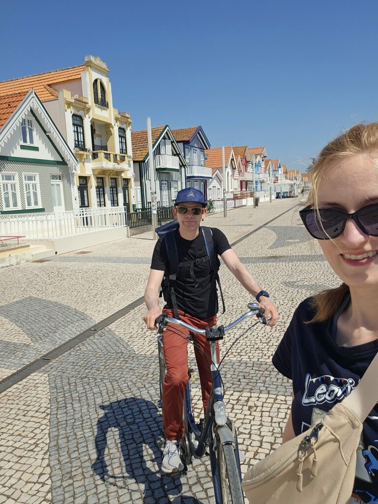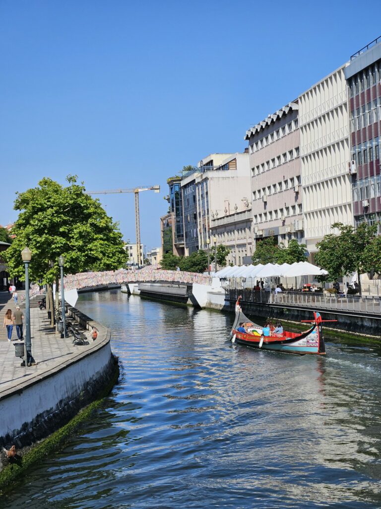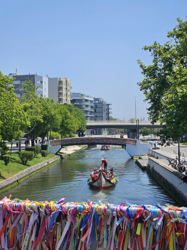 Po południu wróciliśmy do samochodu i ruszyliśmy w stronę Aveiro, gdzie oddaliśmy auto. Samo Aveiro okazało się bardzo przyjemnym i naszym zdaniem, trochę niedocenianym miastem. Często nazywane jest „portugalską Wenecją” ze względu na kanały przecinające centrum i kolorowe łodzie moliceiros, którymi można wybrać się na krótki rejs.