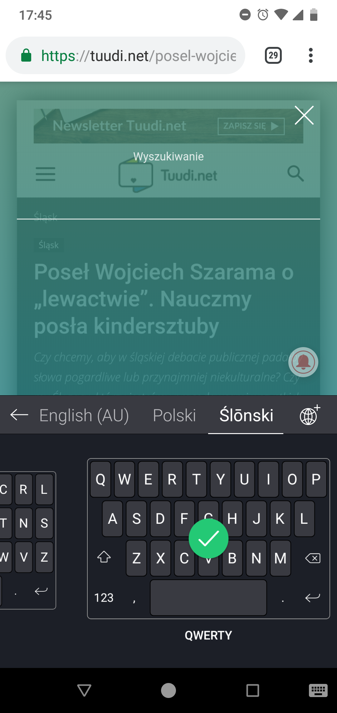 Śląska klawiatura i słownik dla systemu Android oraz iOS jest dostępna dzięki aplikacji SwiftKey Keyboard. Aplikacja wprowadzi śląskie litery na klawiaturę Waszego telefonu (w nowszych wersjach Androida opcja ta była domyślnie włączona). Oprócz tego będziecie mogli korzystać z wbudowanego słownika, który będzie podpowiadać Wam pisane przez Was śląskie słowa. Sam SwiftKey natomiast jest programem, który uczy się Waszego stylu pisania i zmienia domyślną klawiaturę na bardziej przyjazną użytkownikowi – jeśli chcecie możecie zgodzić się na analizę Waszych tekstów na Facebooku, Gmailu oraz Twitterze.